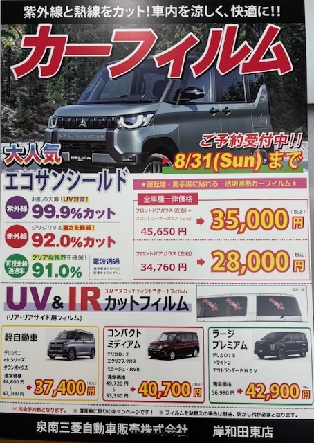 Staff Blog スタッフブログ 202507/28 カブトムシ頂きました🌳 こんにちは! 岸和田東店 西野です! 先日、兵庫三菱 川西店店長様よりカブトムシを譲っていただきまし… 202507/19 お手洗い場は改装工事中です🔨 こんにちは! 岸和田東店 西野です! 只今、お手洗い場の改装工事を行っています! 工事期間は今月末ま… 202507/19 充電設備故障のご案内 いつもご愛顧いただきまして誠にありがとうございます。 この度、急速充電器故障中の為、充電が出来ない状… 202507/18 これからの時期にはカーフィルム必須です! こんにちは! 岸和田東店 西野です! 今回は、これからの時期におススメの商品のご紹介をさせて頂きます… 202507/11 S様よりお花を頂きました!🌸 こんにちは! 岸和田東店 西野です! 先日、ご贔屓にして頂いているS様よりお花を頂きました🌹🌹 観賞… 202507/04 8月お盆休暇のお知らせ こんにちは! 岸和田東店 西野です! 7月に入り、早くも1年の半分越えましたね。。。 毎日毎日、朝か… 202506/30 中古車入庫しました!! こんにちは! 岸和田東店 西野です! 早速ですが、新しく中古車入庫しました! エクリプスクロス(ガソ… 202506/27 JAF(ロードサービス)の相談コーナー作りました! こんにちは! 岸和田東店 西野です! とうとう近畿地方の梅雨も明けましたね。。 これからもどんどん気… 202506/23 中古車アウトレットセール!! こんにちは! 岸和田東店 西野です! 今回は、お買い得な中古車のご紹介をさせて頂きます! EKスペー… 202506/21 展示車入れ替えしました! こんにちは! 岸和田東店 西野です! 早速ですが、展示車入れ替えしました! デリカミニ Gプレミアム… 202506/14 ★保険証券診断実施中です★ こんにちは! 岸和田東店 西野です! 只今当店では、自動車保険の証券診断を実施しております! お困り… 202505/26 展示車入れ替えました! こんにちは!岸和田東店 西野です! 展示車入れ替えしました! デリカD:5 シャモニー ホワイトダイ… 202505/19 毎週金曜日はレディースDAY♪ こんにちは! 岸和田東店 西野です! 毎週金曜日はレディースDAYでシャンプー洗車とワックス洗車 が… 202505/18 OBD診断とは。。。 こんにちは! 岸和田東店 西野です! 最近はスッキリ晴れずムシムシとした天気が続きますね。。 暑さに… 202505/12 中古車アウトレットセール!! こんにちは! 岸和田東店 西野です! 今回は、中古車在庫の中でも一番お買い得なお車の紹介を致します!… 202505/11 新しく試乗車用意しました! こんにちは! 岸和田東店 西野です! 早速ですが、新しく試乗車用意しました(*'∀') タウンボック… 202505/09 ガチャガチャを用意しました! こんにちは! 岸和田東店 西野です! 岸和田東店にお子様用のガチャガチャを用意しました(*'ω'*)… 202505/08 本日から営業してます! こんにちは! 岸和田東店 西野です! 5日間のゴールデンウィーク休暇が明け、今日から 通常通りの営業… Show More
